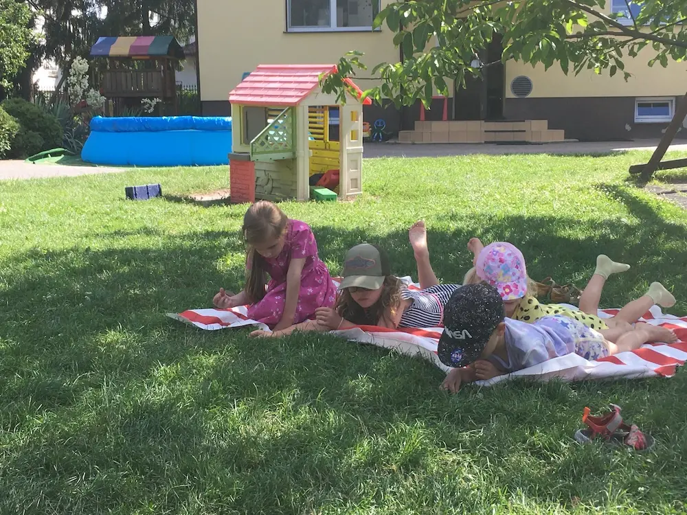 Przedszkole znajduje się w cichej, spokojnej i zielonej okolicy Starych Włoch, w budynku o powierzchni 200m2, który otoczony jest ogrodem o powierzchni 2000m2. Przestronny plac zabaw to miejsce gdzie dzieci mogą codziennie bawić się, biegać i odpoczywać, a w miesiącach wakacyjnych kąpać się w naszym basenie.
